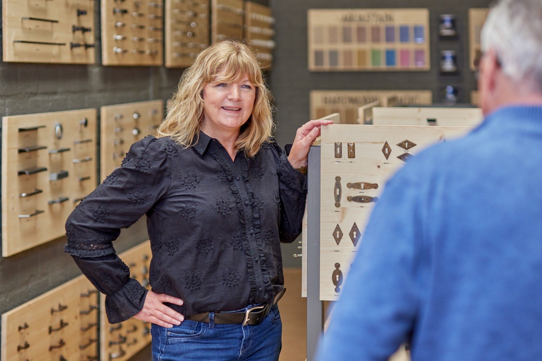 Bent u voorstander van ‘ouderwets’ fysiek winkelen, dan kunt u ook bij ons aan huis terecht in onze showroom. Ook onze showroom is meegegaan met de tijd en laat u een uitgebreid assortiment aan bouw- en meubelbeslag zien. Veel is gerangschikt op kleur, waardoor combineren van bijvoorbeeld grepen met knoppen een stuk eenvoudiger is.